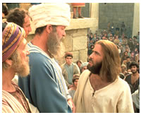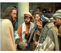 犹太领袖围绕在耶稣身边问祂是否是弥赛亚。他们好像是真的很好奇,但实际上却是要设一个陷阱,希望从祂的话中抓到把柄,以便把祂抓拿。耶稣没有直接回答,反而告诉他们说,祂已告诉他们祂是谁,可是他们不相信: